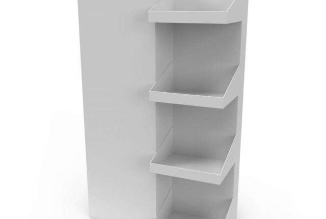 段ボール製ディスプレイ什器は、様々な形状で製作することができます。例えば、広いフロアで注目されるように、多くの商品を陳列したい場合にはフロアスタンド型、限られたスペースを有効活用したい場合には、吊り下げ型や卓上型などが良いでしょう。